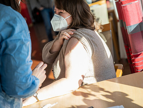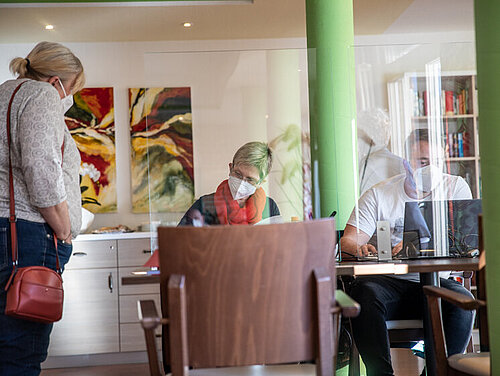 Doch an diesem Tag hat das Café eine andere Funktion. Es ist ein Anmelde- und Wartezimmer. Es ist der Raum, in dem die Impfung durch das mobile Impfteam organisiert wird.