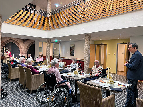 Im Haus Stephanus hat man sich für einen Gedenkkreis entschieden, der Anfang Februar das erste Mal stattfand. Coronabedingt in zwei Gruppen aufgeteilt, trafen sich die Bewohnerinnen und Bewohner im Goethe Café oder am Marktplatz in einem geschlossenen Kreis, um über kürzlich, aber auch länger Verstorbene zu sprechen, sich an sie zu erinnern und gemeinsam um sie zu trauern. Professionelle Begleitung erhielten sie dabei von Pfarrer Horst Nold. Er spendete Trost, las aus der Bibel vor, betete gemeinsam mit den Anwesenden und zeigte mit viel Verständnis und Einfühlsamkeit Wege aus den trüben Gedanken auf, ohne dies zu erzwingen. So entstand eine richtige Trauergemeinschaft, die sich gegenseitig stützt und gleichzeitig die Verstorbenen in Ehren hält.