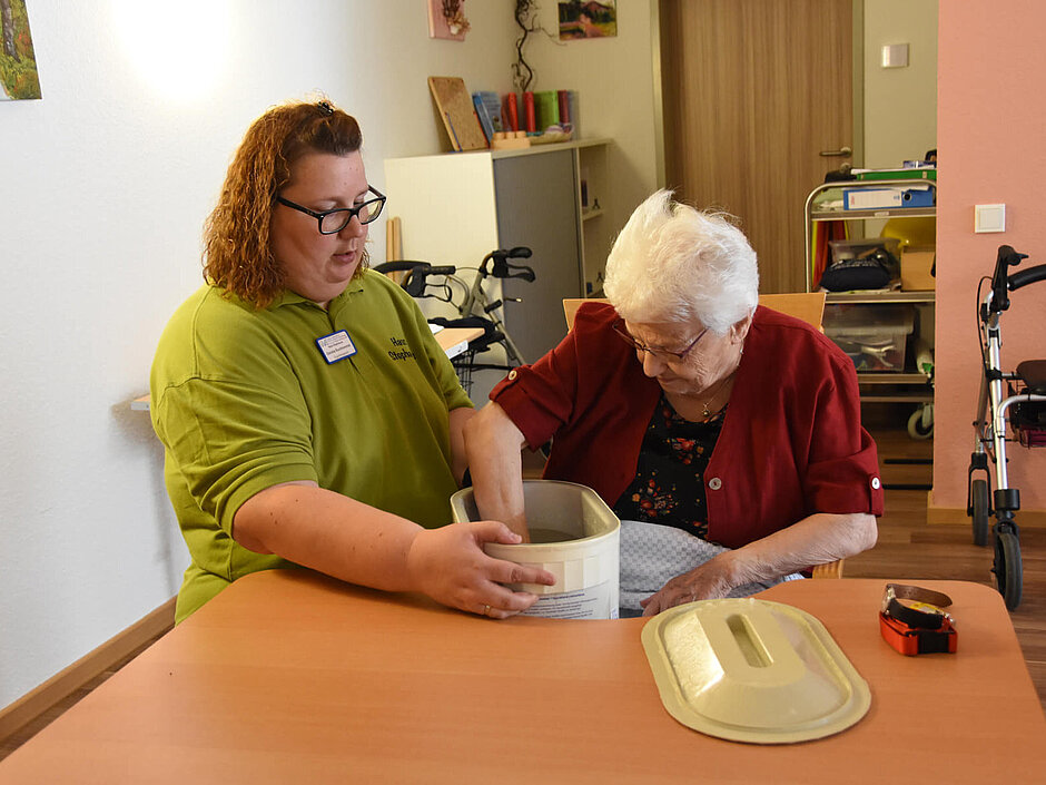 Zwei hauseigene Ergotherapeutinnen mit einer mehrjährigen Berufserfahrung und unsere Zusätzlichen Betreuungskräfte begleiten Betroffene liebevoll durch den Tag – sie helfen ihnen, trotz Demenz noch viele schöne Momente zu erleben.