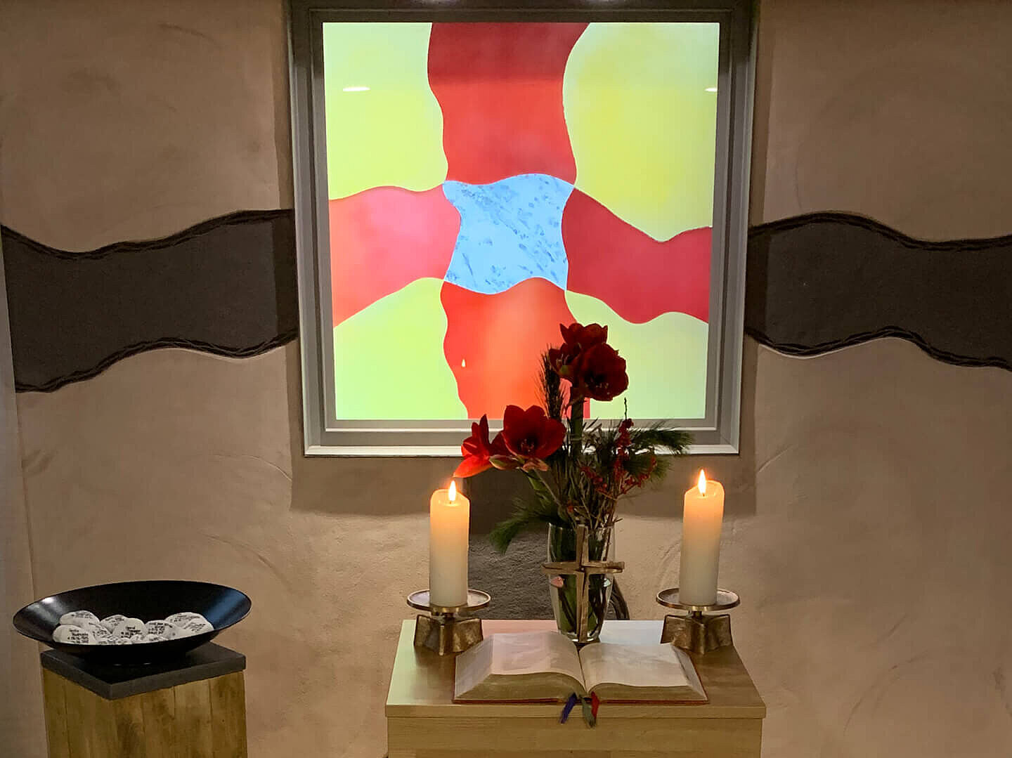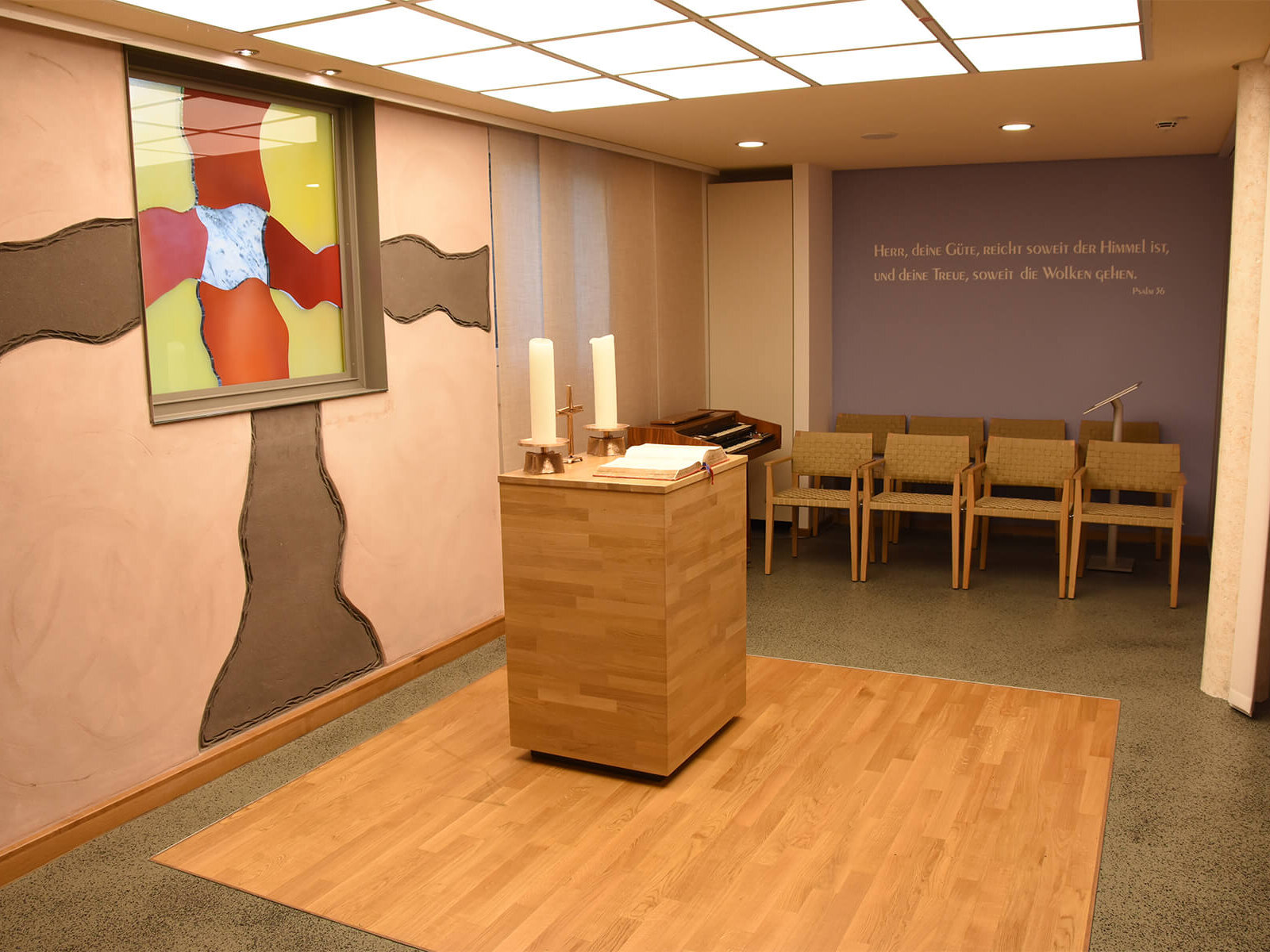 In unserem Raum der Stille finden regelmäßig Gottesdienste und hl. Messen statt, zu denen alle Bewohnerinnen und Bewohner herzlich eingeladen sind. Selbstverständlich kann der Raum auch jederzeit so besucht werden, um Ruhe zu finden, den Alltagslärm auszuschließen. Unser Raum der Stille ist ein Ort, in dem Sie in schwierigen Zeiten Linderung und Geborgenheit finden.