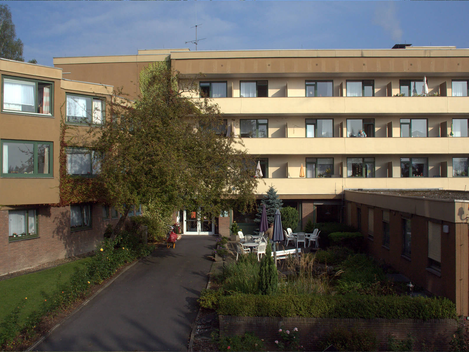 Der in seiner heutigen Form zu Verfügung stehende Gebäudekomplex bietet Platz für 109 Bewohner in der stationären Pflege und 6 Wohnungen für „Wohnen mit Service“.